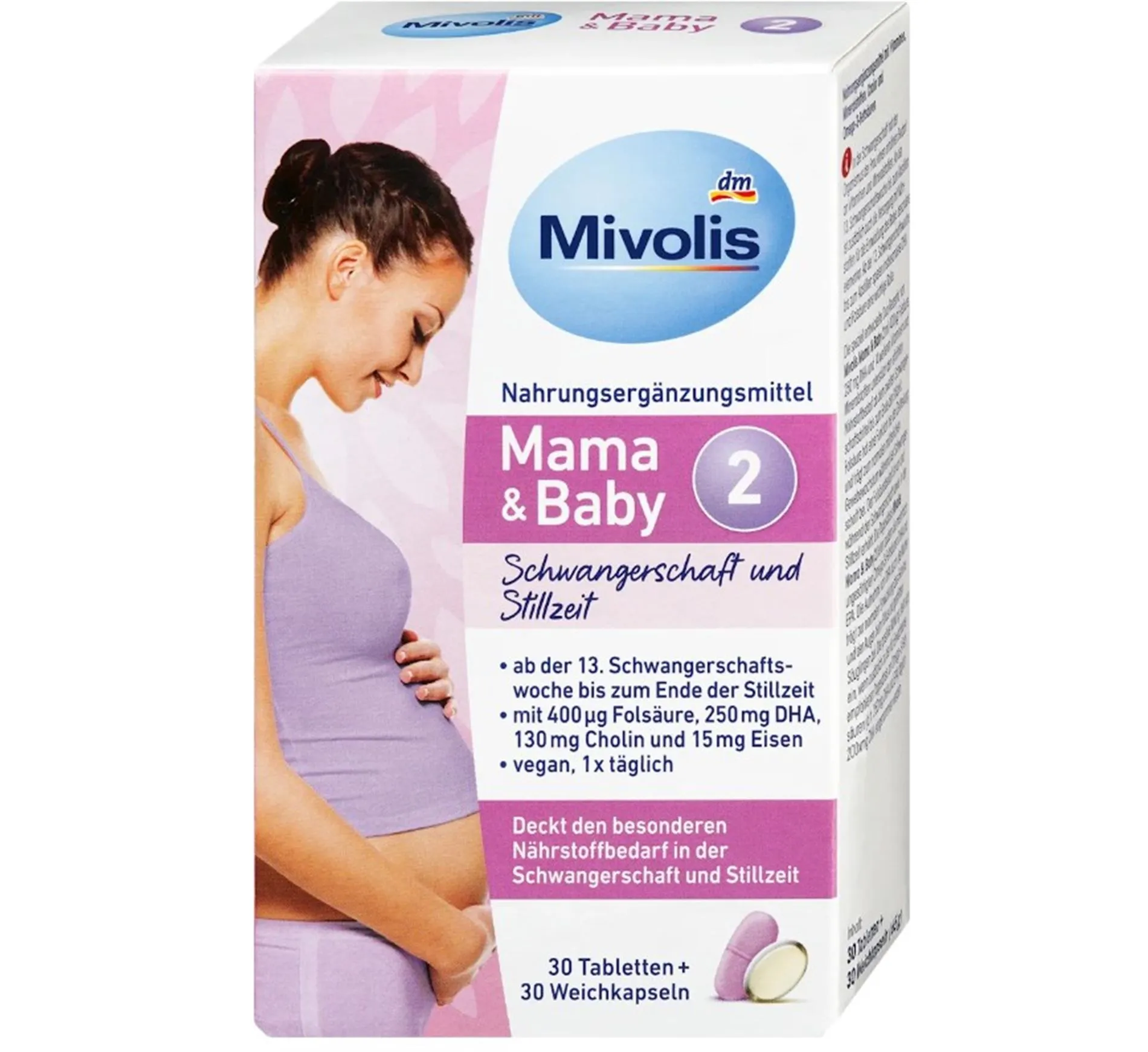 „Tablete Mama & Baby 2 Supliment alimentar cu vitamine, minerale, colină și acizi grași omega-3, 65 g“ de la Mivolis