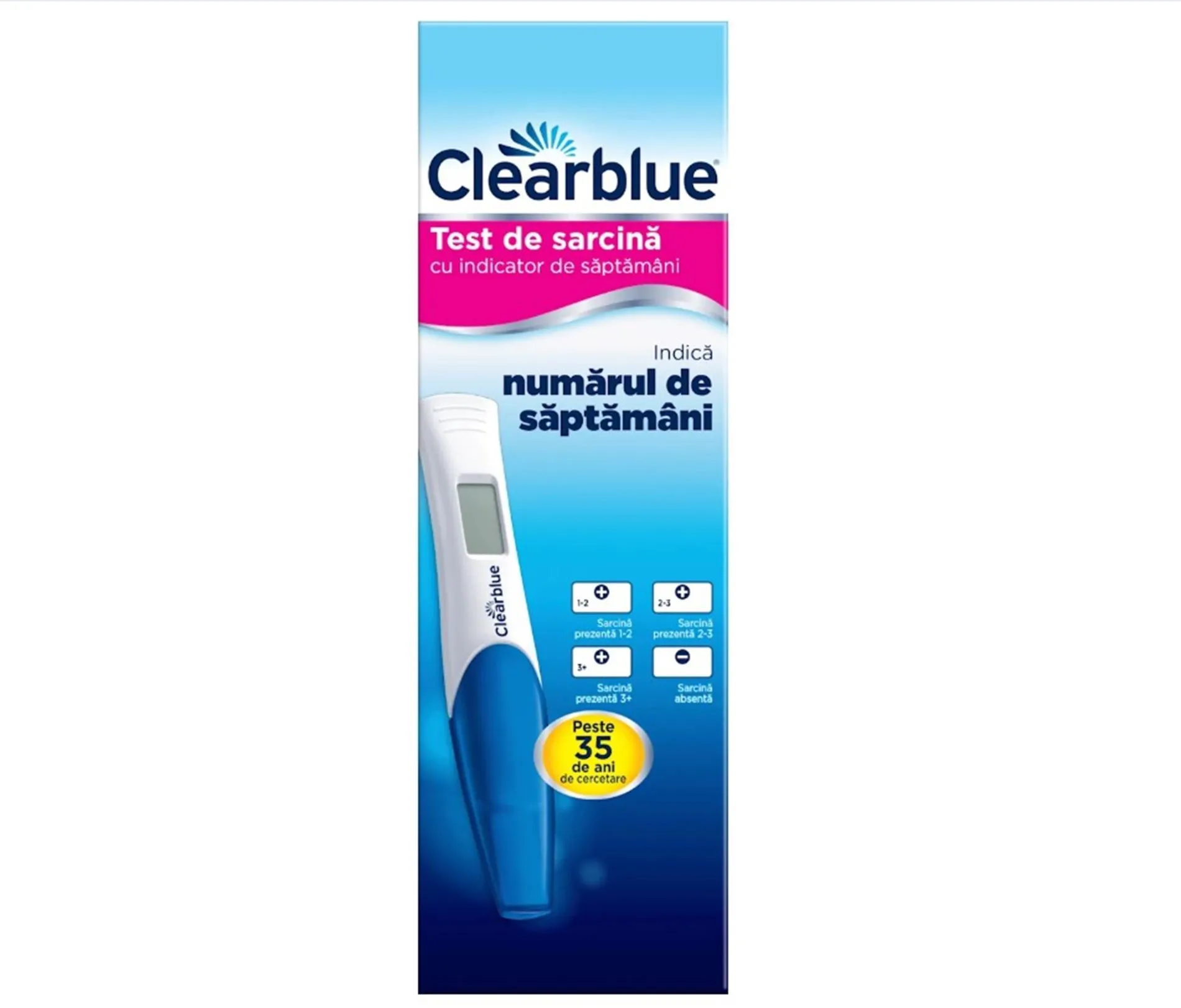 „Test de sarcină digital cu indicator de săptămâni“ de la Clearblue